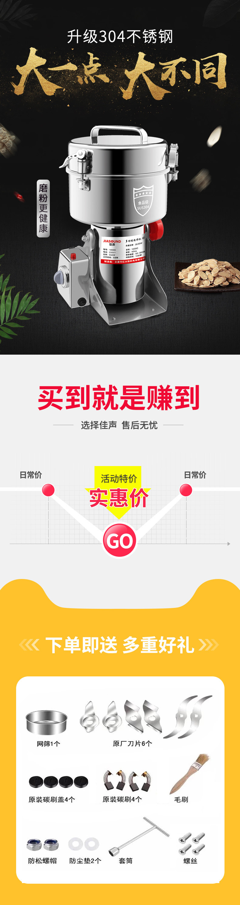品牌: JIASOUND/佳声 型号: 1000C 材质: 304不锈钢 产地: 中国大陆 省份: 浙江省 地市: 金华市生产 企业: 永康红太阳机电有限公司 货号: 1000C 保修期: 12个月