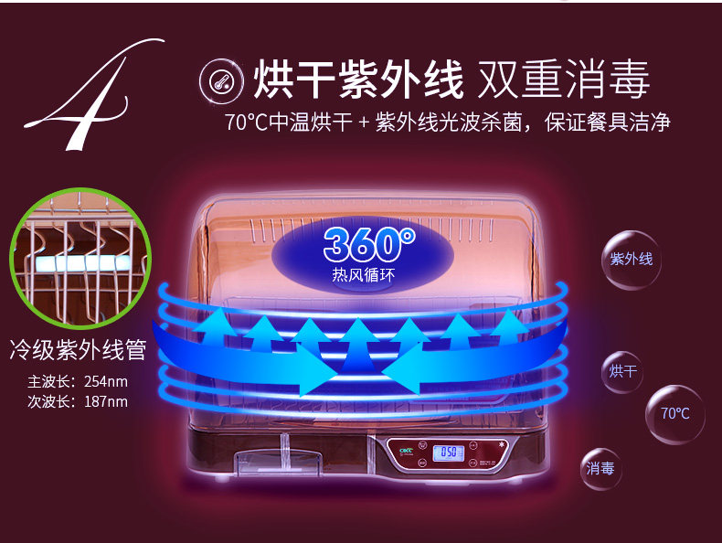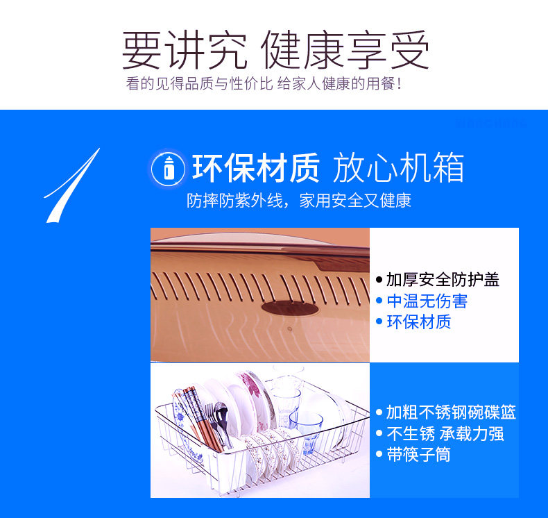 集碗架、碗柜、消毒柜、沥水架一身!紫外+臭氧+负离子+烘干