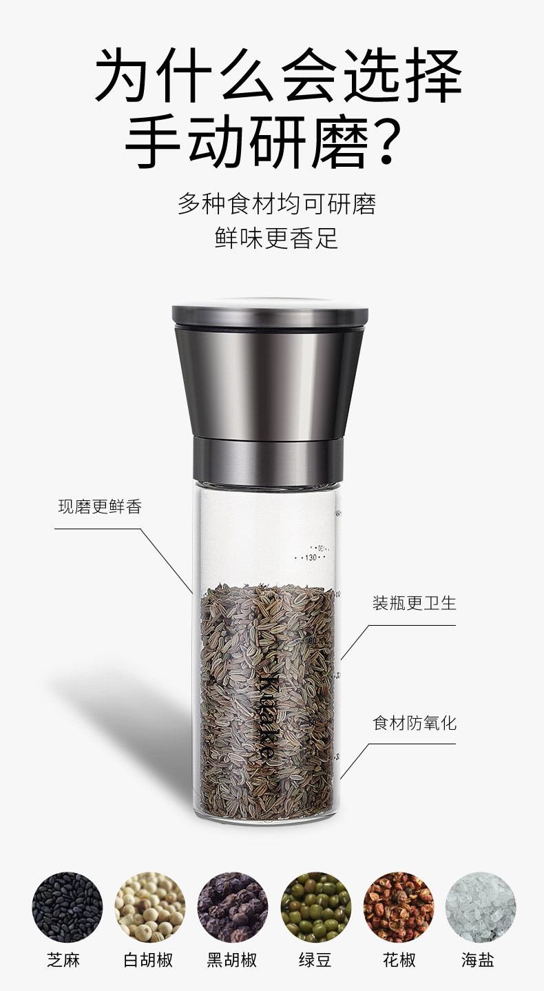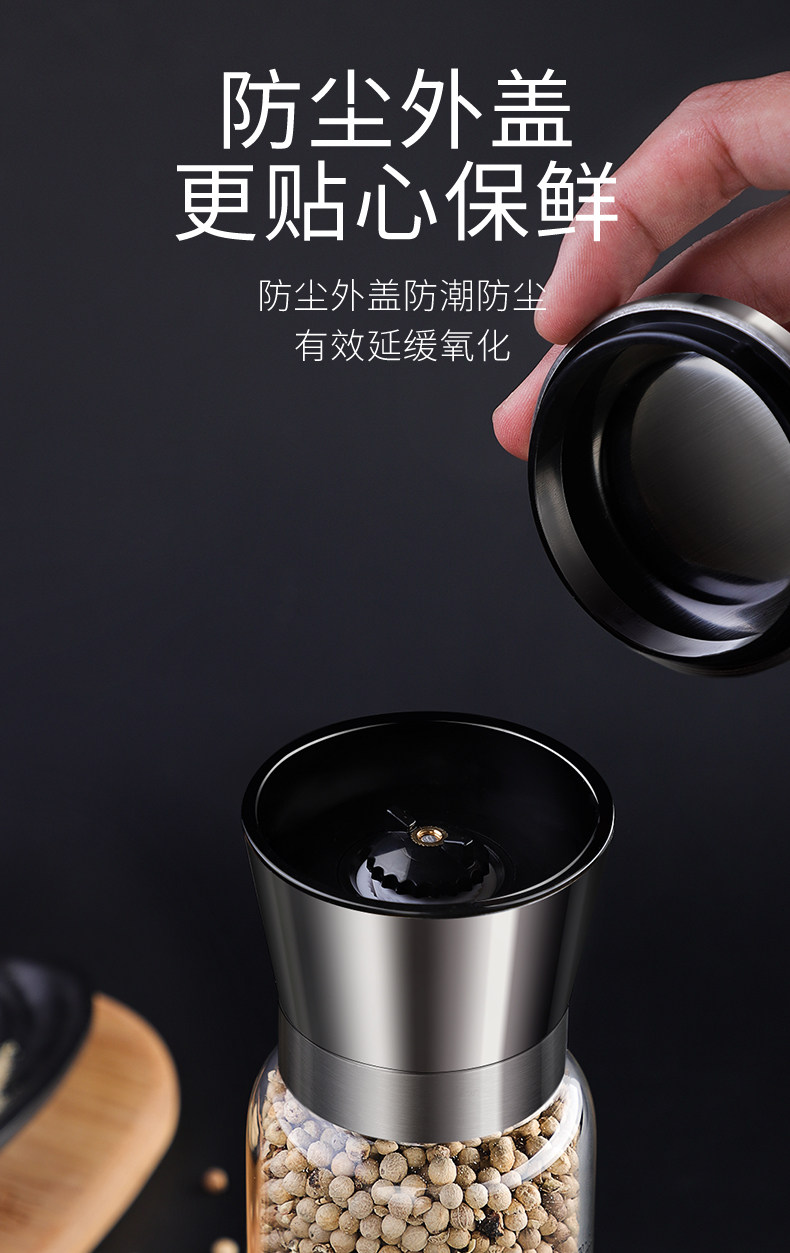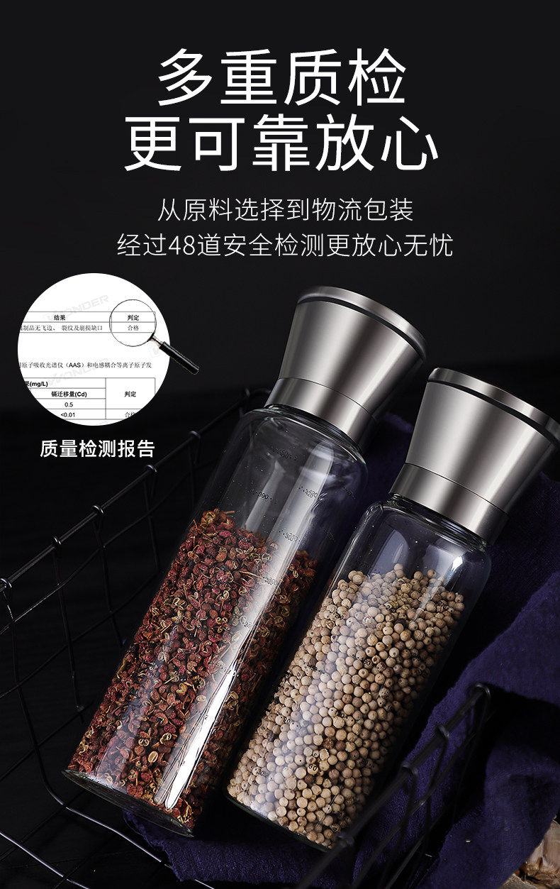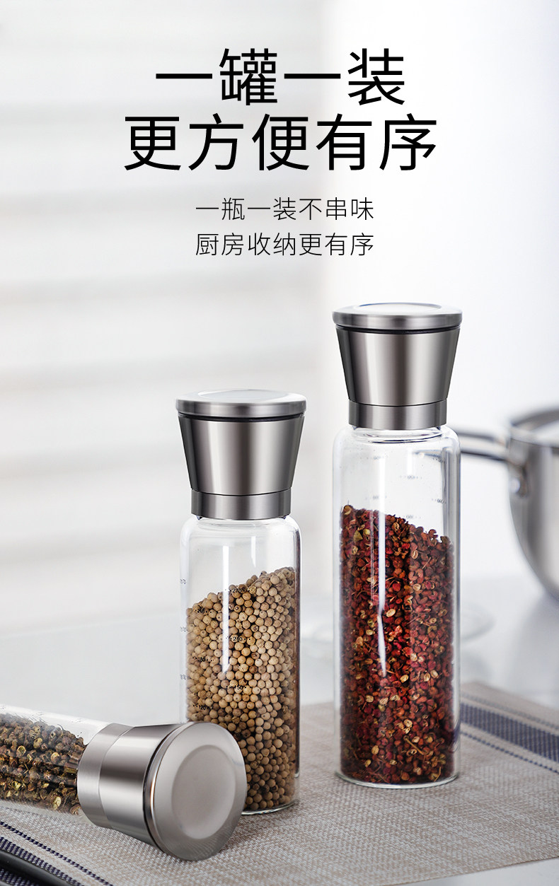 颜色分类: 【超值3件套】180mL研磨器X1+100mL撒料瓶X2 【超值3件套】170mL研磨器X1+100mL撒料瓶X2 【超值3件套】300mL研磨器X1+100mL撒料瓶X2 不锈钢盖+无铅玻璃【180ml一只装】 不锈钢盖+无铅玻璃【180ml两只装】 不锈钢盖+耐高温玻璃【170ml一只装】 不锈钢盖+耐高温玻璃【170ml两只装】 不锈钢盖+耐高温玻璃【300ml一只装】 不锈钢盖+耐高温玻璃【300ml两只装】 不锈钢盖+耐高温玻璃【500ml一只装】 不锈钢盖+耐高温玻璃【500ml两只装】 (调味瓶6件套)中号嘴 莫斯500MLX2+研磨器X1+带孔调味瓶X3 (调味瓶6件套)按压嘴 沃克500MLX2+研磨器X1+带孔调味瓶X3 (调味瓶6件套)大号嘴 辛迪500MLX2+研磨器X1+带孔调味瓶X3货号: 旋转研磨器