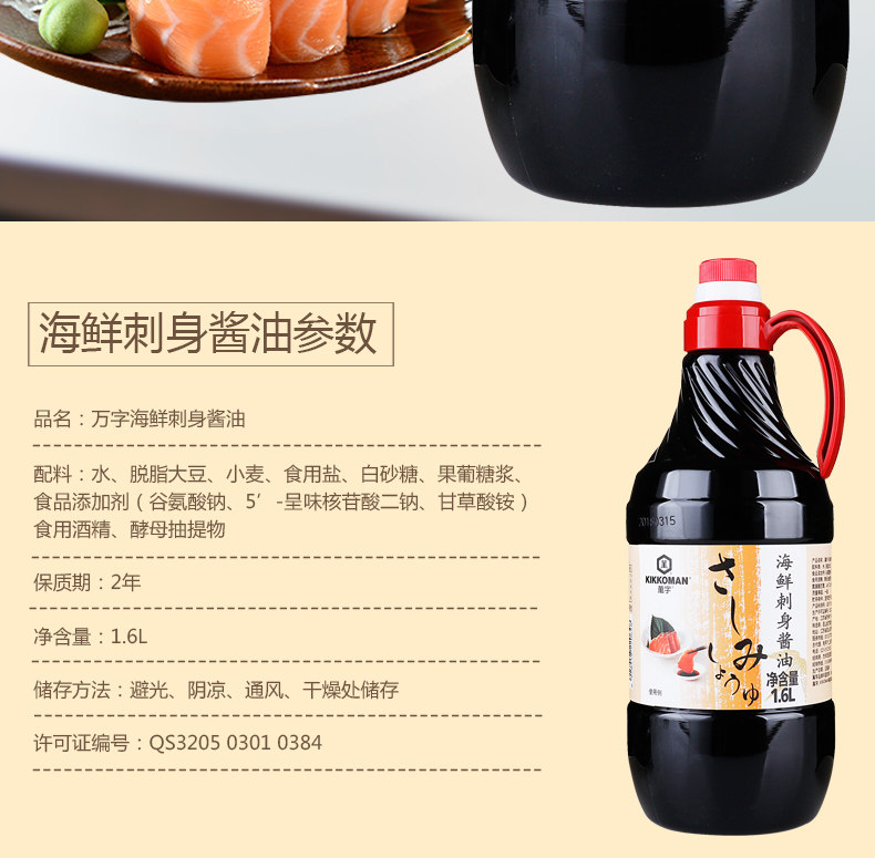 刺身酱油日本万字酱油日式寿司酱油海鲜凉拌酱汁酱类调料1.6L酱油