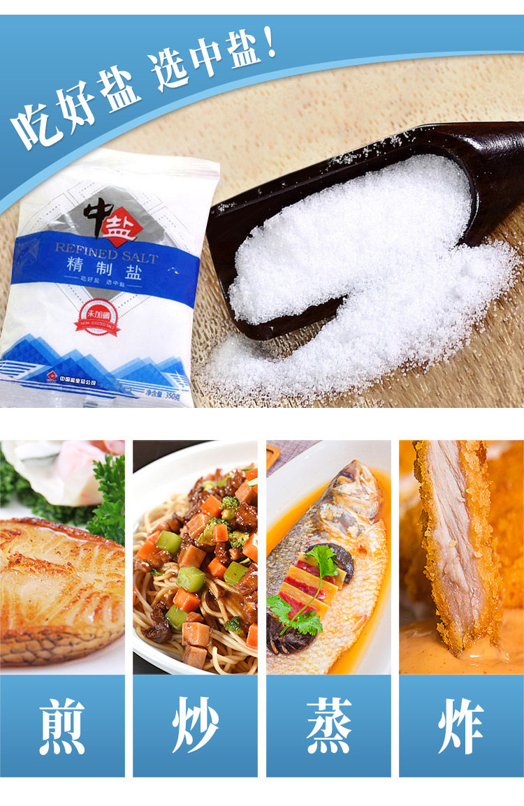 中盐未加碘精制盐无碘精制食用盐巴无典盐无碘食盐细盐350g*10袋