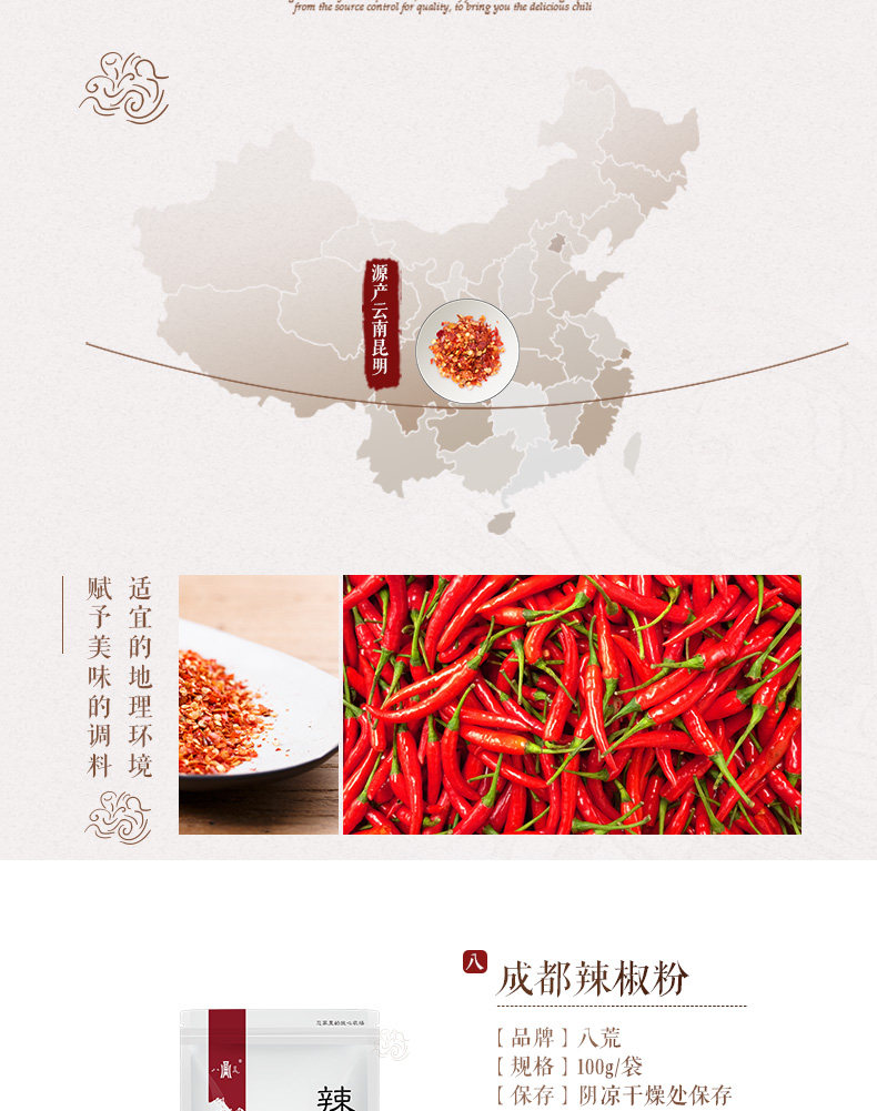 八荒辣椒面100g 厨房香辛料 火锅调料 炒菜调料 香料 炖卤食材