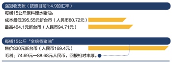 按照叶文祥提供的上述数据计算,其原料馊水猪油折合每桶15公斤成本最低在395.55元新台币,最高成本在464.1元新台币。折合人民币各为80.72元和94.71元。以此计算,每桶15千克“全统香猪油”毛利大约为88.68元和74.69元人民币,回报相对丰厚。