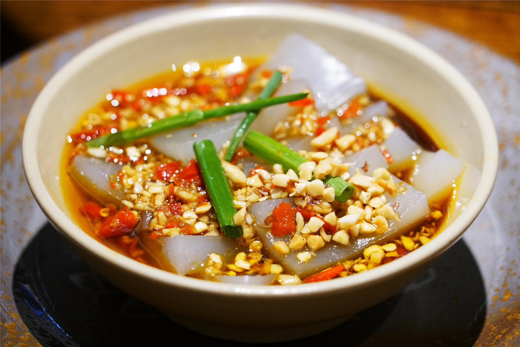 最新鲜的鱼片均匀的放到鹅卵石上面后,服务员用准备好的汤料直接倒进火锅内,鱼片在鹅卵石和汤料的是双重作用下加热,盖上盖子,我们就静静的等候最新鲜的火锅出炉吧。渔夫鱼仔的小菜也特别值得我好好夸一下,小碗分装的形式,可以多点几样品尝一下,每一道小菜都极富成都小吃的精髓。