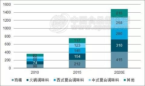 复合增长率预计将达到15%,底部材料和中国复合材料将增长最快。 2017年,中国调味品市场总销售额为3097.4亿元,2010年至2017年的复合年增长率为10.9%,保持稳定增长。 2010 - 2015年,复合调味品市场复合增长率为16.1%,2015年达到751亿元人民币。预计2015年至2020年复合增长率将保持在14.7%,高于到2020年调味品行业增长率。市场规模达到1488亿元。其中,预计中国复合调味料和火锅原料的复合增长率将分别保持领先,分别为16.9%和15.0%,到2020年,市场规模将分别达到268,310亿元。