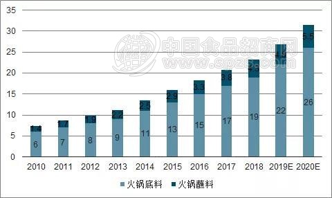 市场增长迅速,零售以餐饮为主要销售渠道。火锅调料是复合调味料的第二大子品类,包括火锅底料(80%)和火锅配料(20%)。火锅调味料目前主要用于火锅料理,也可用于烹饪其他中式菜肴,如辣锅和麻辣。 2018年,火锅调味料市场规模为237亿元(火锅底料为194亿元,火锅预计为43亿元)。据估计,到2020年,火锅调味料的市场规模将达到310亿元(包括275亿元的火锅底料)。元,火锅砸了55亿元,复合增长率为15%。目前,火锅底料的主要销售渠道是家庭消费和餐饮消费,分别占50.1%和46.1%。