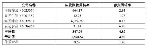 与同行业上市公司相比,仲景食品库存周转率仅为1.4,远低于行业平均水平4.9。