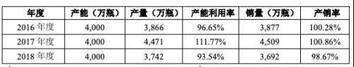 事实上,随着业绩增速的放缓,仲景食品酱制品的生产率利用率开始下降。产量从2016年的3866万瓶下降到2018年的3742瓶,产能利用率从96.65%下降到93.54%。不仅如此,2018年的销量也有所下降,低于目前的产量。